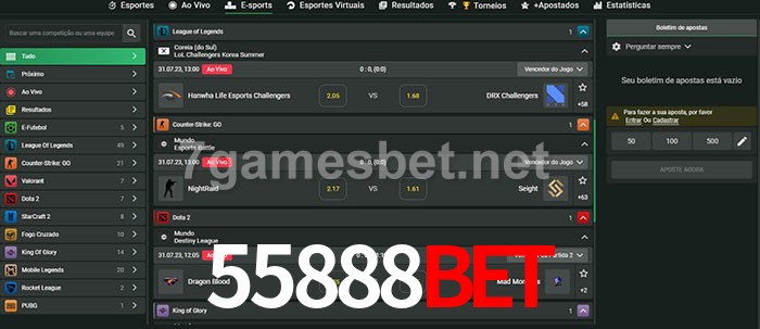 O 55888Bet oferece uma grande seleção de opções de apostas em e-sports com probabilidades competitivas